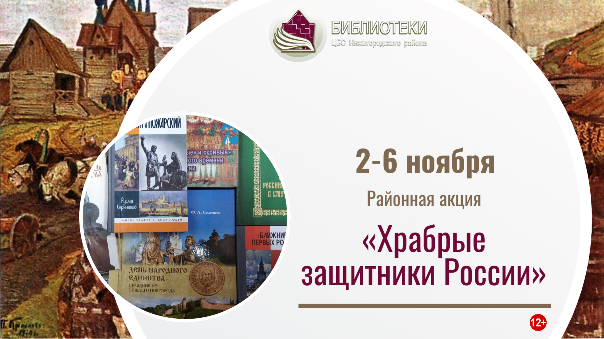 В рамках районной акции, приуроченной к Дню народного единства, в библиотеках Нижегородского района прошли мероприятия о воеводах, полководцах, казаках и ратниках Смутного времени (воеводы Михаил Шеин и Борис Михайлович Лыков-Оболенский, лидер Первого ополчения Прокопий Ляпунов, полководец Михаил Скопин-Шуйский, казачий атаман Андрей Захарович Просовецкий и др.). Книги по истории России, представленные на книжных выставках, познакомили читателей с непростыми для нашей страны событиями начала XVII века.